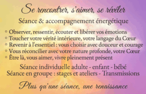Je vous propose si vous le souhaitez pour un premier Contact, un entretien téléphonique d’environ 10 à 15 minutes, pour faire  un premier point  et discuter  des séances : le soin énergétique enfant  et/ou le soin énergétique adulte et/ou de l’enseignement proposé